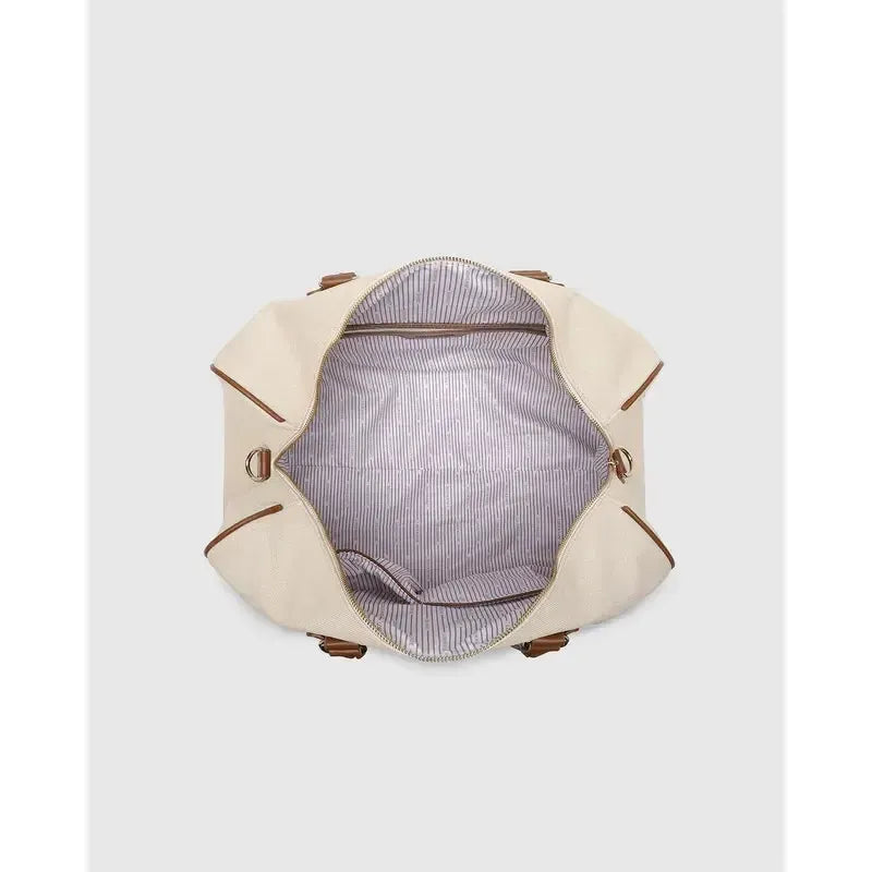 The Taylor Canvas Tan Weekender Bag is your polished yet understated travel companion, designed to move effortlessly with you from city breaks to overnight escapes. Designed in durable neutral canvas and accented with tan vegan leather, Taylor Canvas Tan strikes the perfect balance between functionality and refined style. This spacious travel duffle bag doubles as a durable carry-on with zip closure, featuring two sturdy top handles and a detachable, adjustable vegan leather strap for versatile wear. Inside, the thoughtfully designed interior offers generous space with both zip and slip pockets to keep your essentials neatly organised. Unisex in style and timeless in form, Taylor Canvas Tan is the ideal carry-on for life on the go - polished enough for hotel lobbies, practical enough for the open road.