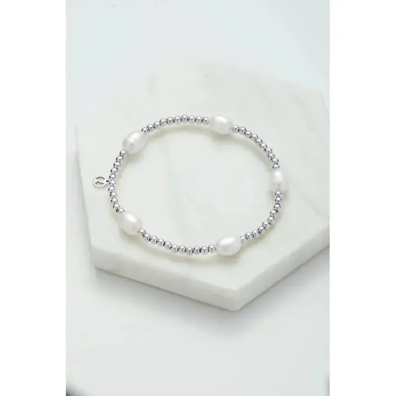 Introducing the Meika bracelet, a captivating blend of elegance and sophistication. Available in both radiant gold and timeless silver, this bracelet features five lustrous freshwater pearls delicately nestled along its design.