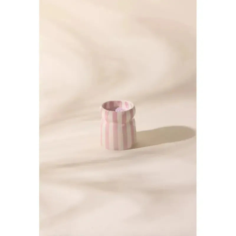 Transport yourself to the world’s most beautiful beaches with our Cabana collection, each designed to evoke the soothing, transformative scents of coastal destinations. These hand painted candles inspired by striped umbrellas are 6.5oz and feature a unique pinched form.