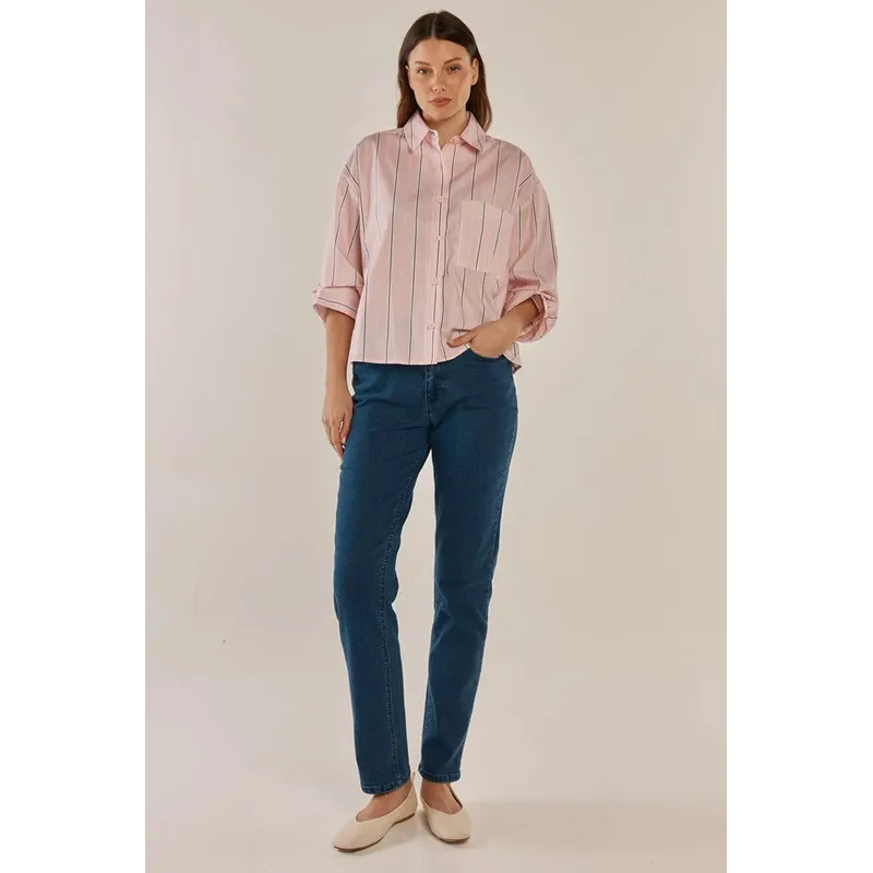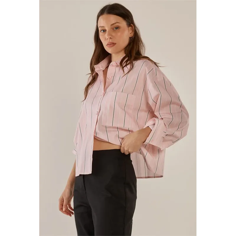 The Erin Crop Shirt is an elevated staple with a modern, easy-to-style shape. Designed in a structured cotton feel with an all-over stripe, it adds polish to everyday outfits. The cropped length works effortlessly with high-waisted bottoms, while the button-through front keeps it classic. A comfortable trans-seasonal piece you’ll wear again and again.