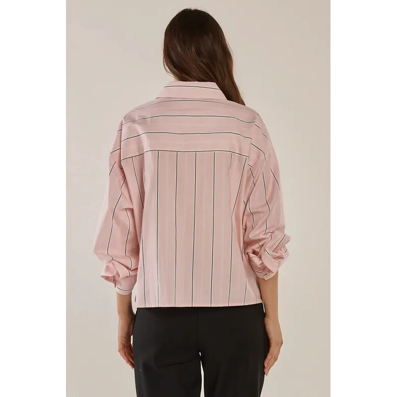 Erin Crop Shirt / Pink+Chocolate Stripe-Betty Basics-Shop At The Hive Ashburton-Lifestyle Store & Online Gifts