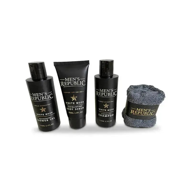 This Men's Republic grooming kit contains everything you need for a complete grooming and shower routine. This is the perfect shower kit for when at home, at the gym or travelling. Comes with quality fabric face towel.