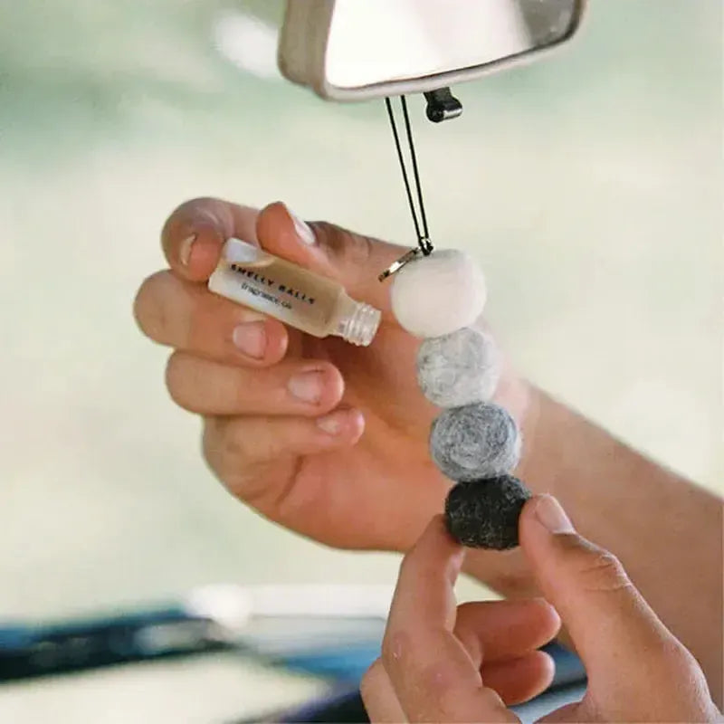 - 4 Unscented Ethically Sourced Wool Felt Balls with branded charm and elastic string for easy hanging.