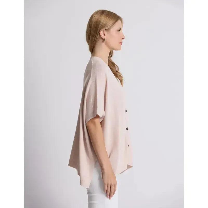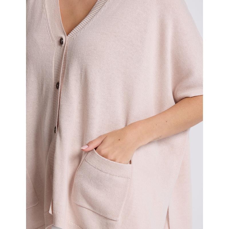 Relaxed fit v neck cardigan in fine knit. Contrast buttons, front patch pockets and side splits at hemline.