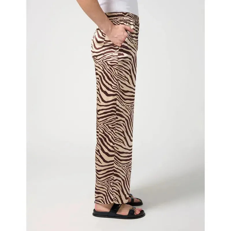 Relaxed fit elasticated waist pant with side angle pockets and back patch pocket.