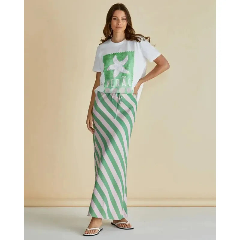 The Brooke Bias Skirt is a timeless piece with modern appeal. Crafted with a touch of linen, it features a flattering bias cut and waist tie for an adjustable fit. The midi length drapes effortlessly, creating a soft, elevated silhouette. Perfect for transeasonal styling and easy sophistication.