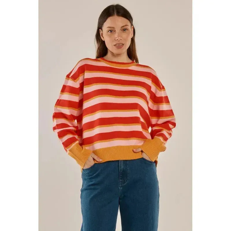 The Leonie Knit Sweater brings a fresh update to everyday knitwear. Designed in a soft, comfortable fabrication, it features a statement print with a classic crew neckline. Ribbed cuffs and hem keep the look polished yet relaxed. An effortless trans-seasonal style that adds interest to your wardrobe.